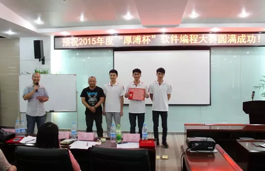 最后由主持人涂建老師對大賽進行最后總結,同學們在準備這次比賽的過程中有很多的收獲,來到這次比賽現場與其他院校的同學們交流亦有更多的收獲!最后主持人涂建老師宣布2015年度“厚溥杯”軟件編程大賽取得圓滿成功!