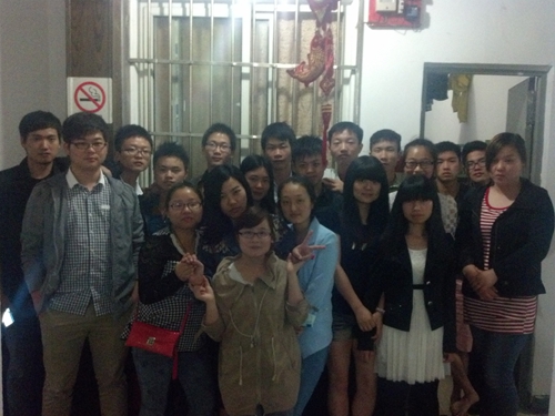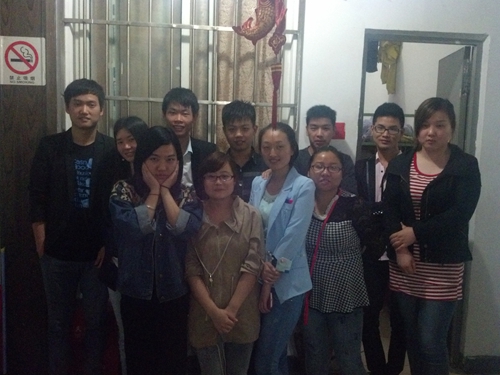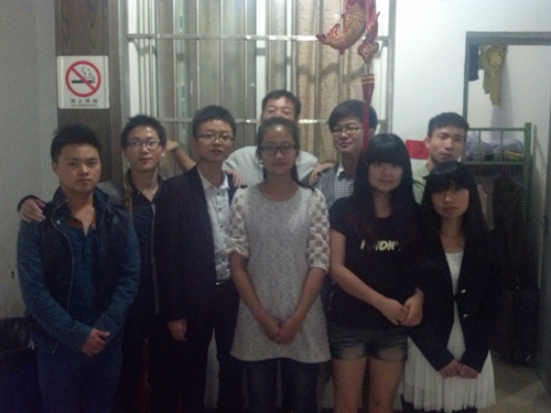 2014年5月11日,景寧老師和已經(jīng)就業(yè)的同學們在學生宿舍留影。