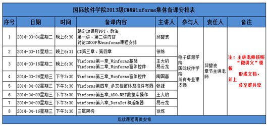 目前,黃岡職業(yè)技術(shù)學(xué)院國(guó)際軟件學(xué)院教學(xué)團(tuán)隊(duì)集體備課效果很好,是其他學(xué)院教師融入到國(guó)軟的重要教學(xué)活動(dòng)之一。學(xué)院學(xué)術(shù)經(jīng)理邱碧波老師嚴(yán)格執(zhí)行集體備課,合理安排主講教師,通過集體備課整體上提高了教學(xué)質(zhì)量,最終學(xué)生受益、教師受益、學(xué)院受益。此項(xiàng)活動(dòng),多次受到黃職電信學(xué)院領(lǐng)導(dǎo)好評(píng),被學(xué)院列為“特色教研活動(dòng)”之一。